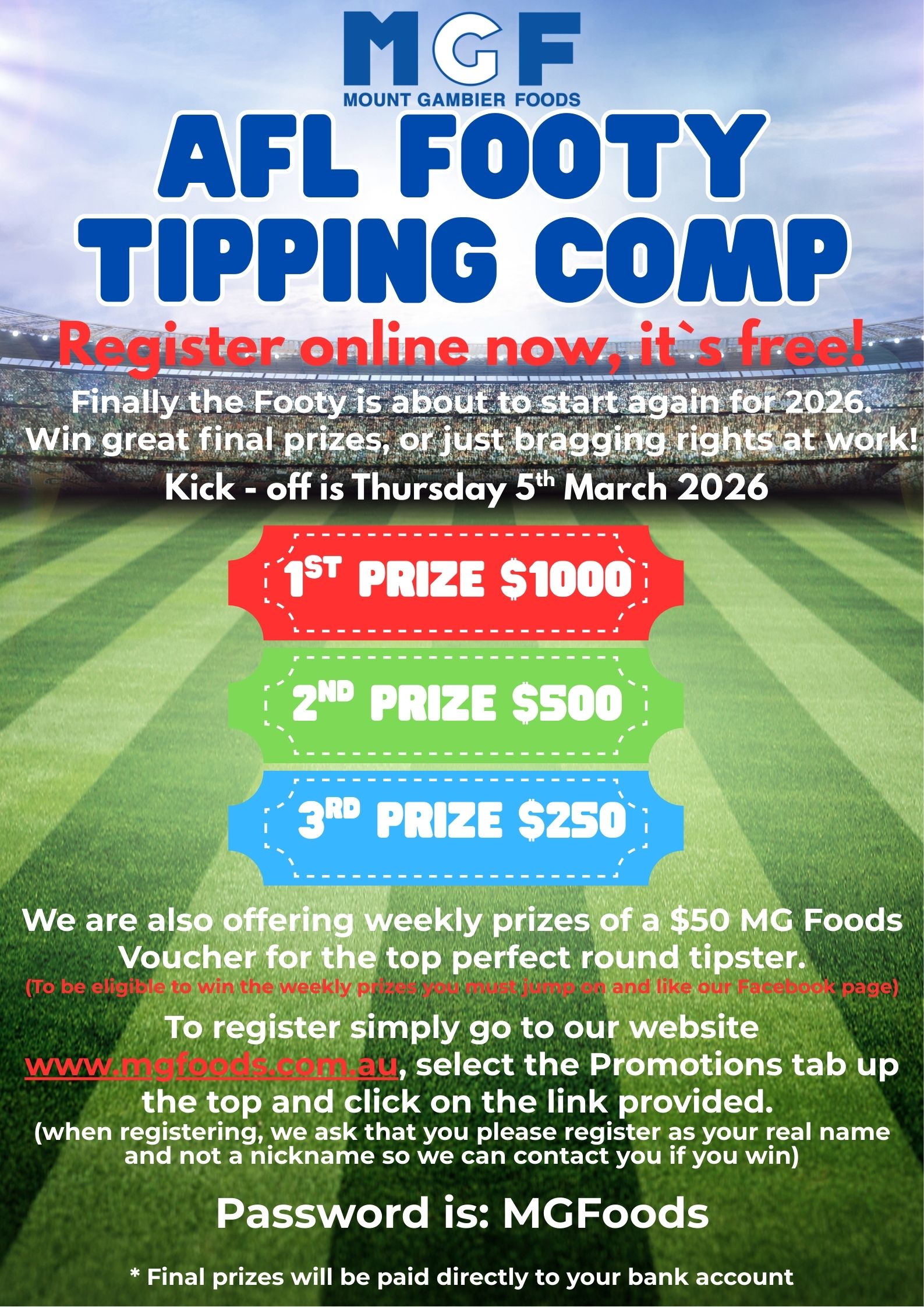 FREE FOOTY TIPPING COMPMG Foods Footy Tipping Competition
